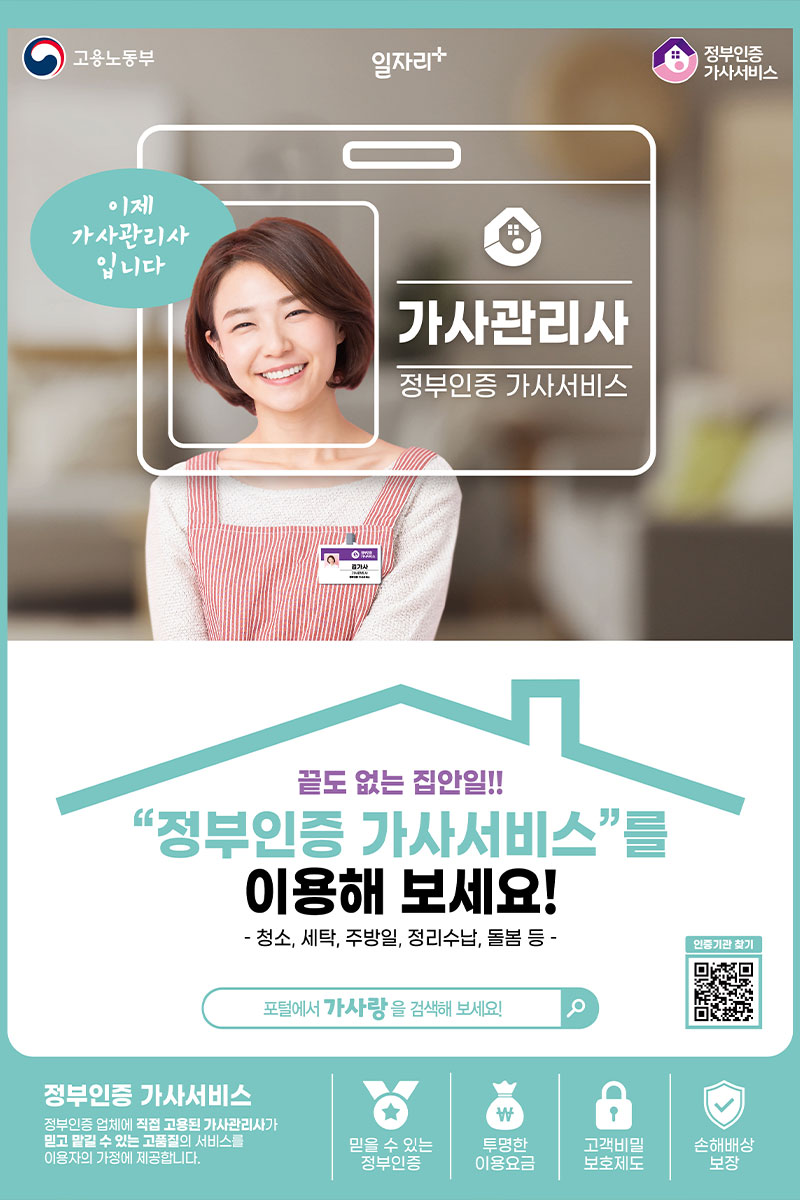 노하우와 정부 가사서비스 제공 기관 인증 취득으로 프리미엄 서비스를 제공 합니다.